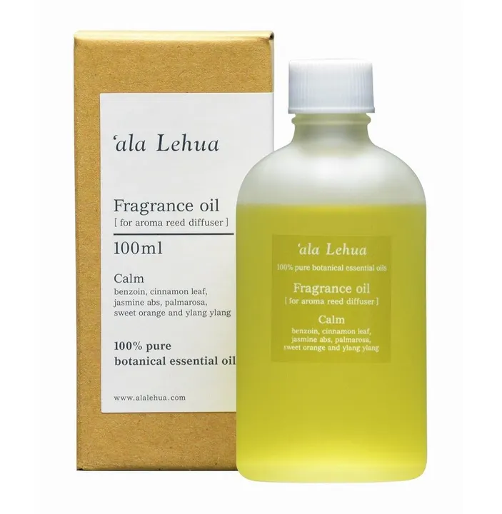 ■やわらかに香る「フレグランスオイル100mL」 Fragrance oil Calm 100ml Peleの詰め替えとして、また直接ラタンスティック(別売)を瓶に差し、やわらかな香りを楽しむリードディフューザーとしてもお使いいただけます。気軽に100%天然精油を調香した心地良い香りをお楽しみください。 ※ラタンスティックは別売りです 芳香期間:1~1.5ヵ月(ご使用の環境によって変わります) -------------------------------------------------- 【香りラインナップ】 -Revive(リヴァイブ)-  ハワイの輝く太陽をイメージした、心も身体も軽やかになる爽やかなフルーティーブレンド。不安や緊張を和らげ落ち着きを取り戻し、 バランスを整えながら気持ちを元気に明るくします。  <配合精油>ベルガモットFCF、ゼラニウム、フランキンセンス、マジョラムスイート、ラベンダー・フランス   -Arbor(アーバー)-  ハワイの木陰をイメージした、心地よい光と風を感じるフルーティーグリーンブレンド。昂ぶった心に落ち着きを取り戻し、 リフレッシュさせ気持ちを明るく前向きにしてくれます。  <配合精油>ライム、メイチャン(リュツアクベバ)、フランキンセンス、ユーカリ・ラディアータ、サイプレス、マジョラム・スイート、シダーウッド、ラバンディン、サンダルウッド -Nest(ネスト)-  ハワイの森の奥深くに咲く花をイメージした、力強い大地と花の甘さを感じるフローラルウッディブレンド。 心に安定感と充足感を取り戻し、気持ちを穏やかにします。  <配合精油>ブラッドオレンジ、ゼラニウム、フランキンセンス、ラバンディン・グロッソ、パチュリ、シダーウッド・アトラス、ジャスミンabs、イランイラン、プチグレン