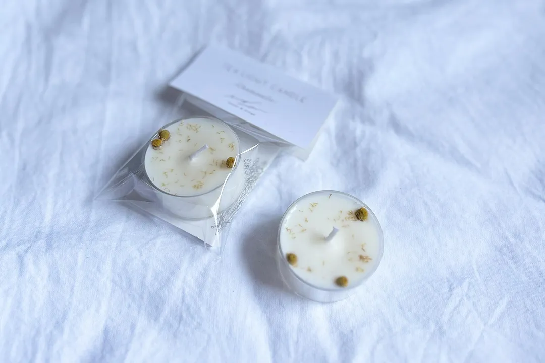 【アソートセット/7種から7つ選べる】こぼれ花のティーライトソイキャンドル<無香料> カモミールと、無香料