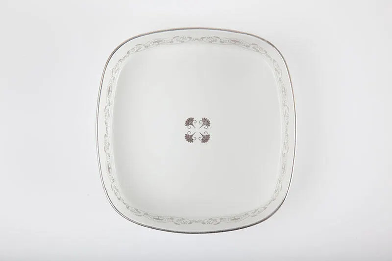 「ゆいからくさ」は鍋島様式に見られる縁を囲むように連続する唐草文様のエッセンスをとらえ、可憐にアレン ジした図案です。紐を結ったような様子から「ゆいからくさ」と名付けたこのシリーズでは、のびやかな唐草、 愛らしい花・実がデザイン化され、日本の伝統色である花浅葱、紅赤、金、白金の色違いで展開。幅広い食卓シー ンに華を添える文様です。 なで角ボウルは、真っ直ぐな立ち上がりがモダンでありながら、角張らず和の雰囲気を併せ持つ形状です。 パスタ、カレー、サラダ、ブレッド、手鞠寿司など幅広くお使いいただけます。 ※形状の特性上、辺の膨らみに個体差がございます。ご了承ください。
