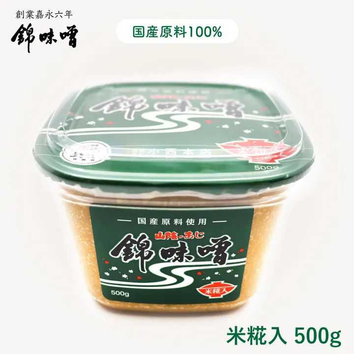 錦味噌 米糀入 500g|国内産原料100% 移し替え不要 便利なパック入り 米みそ 生みそ グルテンフリー ヴィーガン ベジタリアン