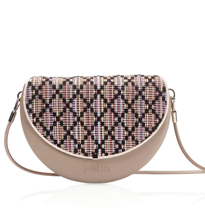 ◆クリエイティブなデザインが光る三日月型ショルダーバッグ。<br>ショルダーストラップとフレームは、フロントカバーの引き立て役となるスタイリッシュなカラーをチョイス。<br>丸みのあるフォルムが優美な印象を与えてくれます。<br><br>ハーフムーン(半月)型ショルダーバッグです。<br><br>■構成部品<br>Frame:Sage Grey<br>Shoulder Strap:Tubolare - Bark &amp; Khaki<br>Chiara In-Bag:Black ZigZag