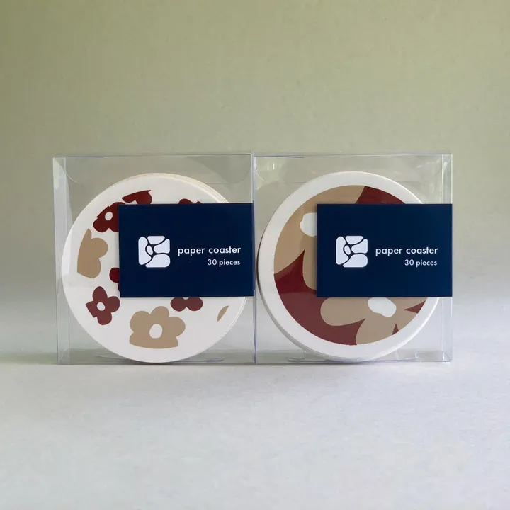 【紙コースター】花柄マルーン×アプリコット 30枚セット