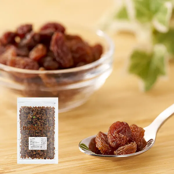 カリフォルニア産に比べ、短時間で天日干しするため、明るい色合いでゴールデンレーズンとも呼ばれています。オイル未使用にもかかわらず、水分値が低いためほぐしやすく、パンの練り込みなどの幅広い加工が可能です。爽やかな甘みをお楽しみください。