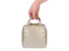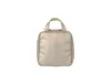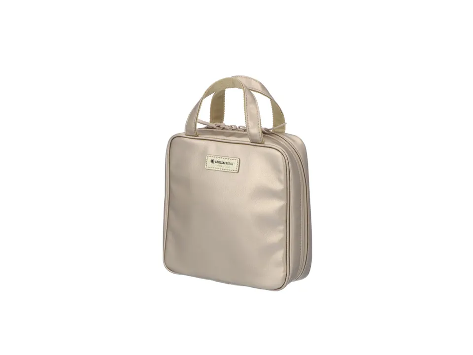 イタリア語で島を意味する“Isola”シリーズ。地中海の島々にそそぐ、太陽の光をイメージしたポーチシリーズです。 落ち着いた深みあるゴールドの輝きを放つ、上質な合成皮革を使用。やわらかさと軽量さが特徴です。また、表面に付着した軽い汚れなら素早く拭き取ることができ、お手入れがしやすいこともポイント。裏地には、リゾートを感じさせるライトブルーを採用しました。 特筆すべきは、この形状。メイクブラシやファンデーションなどを立てて収納するスタイルにすることで、薄さをキープ。取り出しの際も、ファスナーを全開にする必要がありません。 自立型なのでメイク中にポーチが倒れてしまう心配もなし。スペースがないときは、持ち手を指にかけてメイクも可能です。