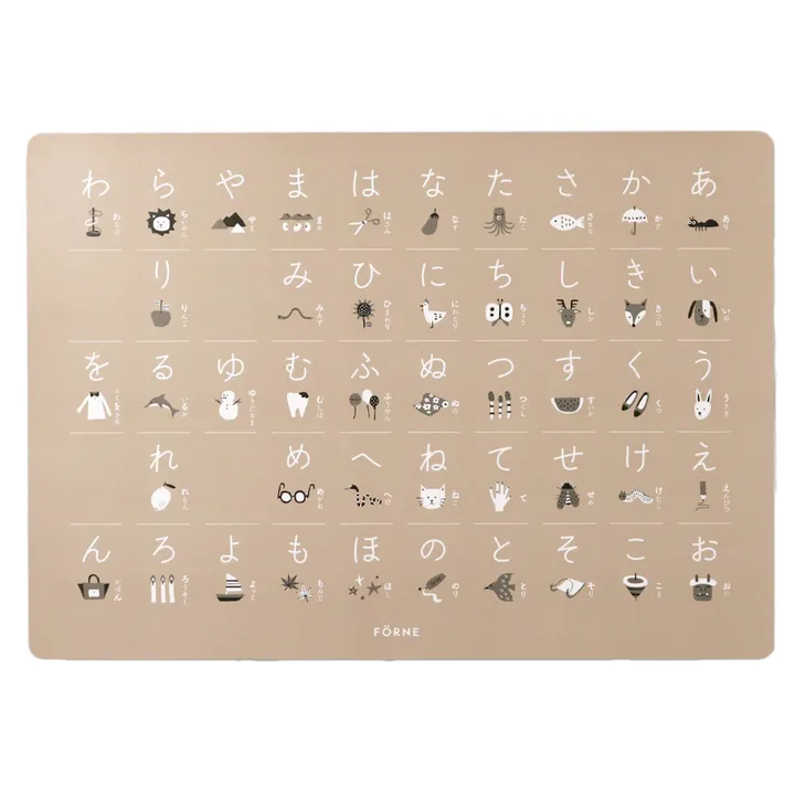 【ひらがな表】 ・モノトーンをベースにしたカラー展開 ・シンプルなイラスト ・防水性があり破れにくい紙でできているのでリビングや子ども部屋だけでなく、水だけで浴室内の壁にも貼ることができます。