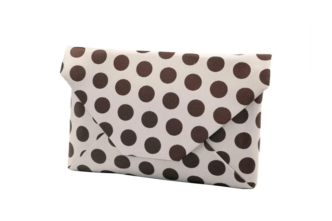 ポップなポルカドットのクラッチバッグ/西陣織シルク・数寄屋袋・和風クラッチ・B5サイズタブレット対応・レディース・日本製 茶玉