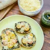 明日葉(東京都大島)、有機エクストラバージンオリーブオイル(スペイン)、天日海塩(インドネシアバリ島)、松の実(中国)、にんにく(岡山県)、有機こしょう(スリランカ)