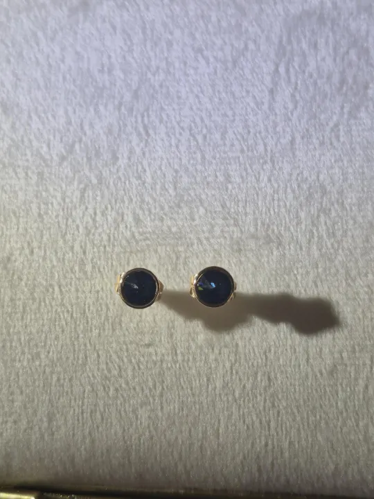 小ぶりでシンプルなピアス。 ネイビーのクリスタルガラスの輝きが特徴で、普段使いにおすすめです。