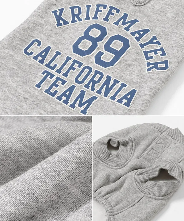 商品の安全・衛生上の理由により着用(試着)された商品および初期不良以外の返品・交換はお受けしておりません。ご注意ください。 《KRIFF MAYER 秋冬アイテム「ロゴスウェットクルー」》 カレッジロゴスウェットクルーがドッグウェアで登場! POPなカラー展開で少しプクっとした発泡プリントが益々愛犬を可愛くさせます♪ フレブルやボストンテリアなど首が太めの犬種のご要望にお応えしXLサイズも今年から展開! ネック部分は面ファスナーで開くので着脱させやすいのも嬉しいポイント。 ハーネス穴付きなのでデザインを邪魔しません! 裏フリースで着心地もよく、防寒対策にも適しています。 ※ハーネス穴あり ※伸縮性がほぼないので、大きめのワンちゃんは服のサイズをよくお確かめください。