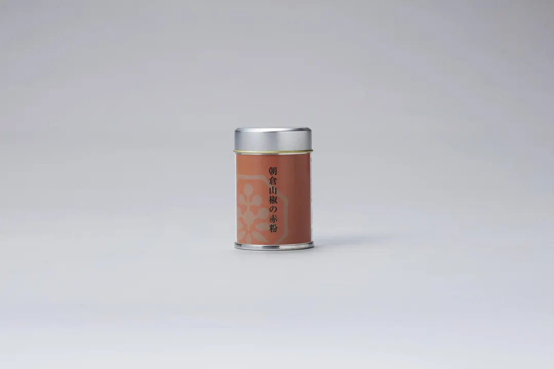 大粒でさわやかな柑橘系の香り、ペパーミントのような香りの朝倉山椒を実が赤くなるまで熟成させて粉末にしました。 和食のみならず洋食でのお魚やお肉との相性がよく、いろいろなお料理にぴったりです。 ① 山椒とはそもそもなにの説明? 山椒とは、日本のミカン科サンショウ属の落葉低木で、日本最古のスパイスとして古くから利用されてきました。 爽やかな香りと舌を刺激する痺れるような辛さが特徴で、若葉(木の芽)、未熟な実(実山椒)、完熟した実の外皮(粉山椒)など、さまざまな部位が日本伝統料理に使われます。うなぎの蒲焼の薬味や佃煮、香辛料として幅広く使われ、漢方薬や美容品としても活用されており、漢方薬としては胃腸の機能を高めたり、痛みの軽減、保湿や血行促進などの効果があります。 ②山椒青粉、山椒赤粉の違い 山椒の「青粉(あおこ)」と「赤粉(あかこ)」の主な違いは、完熟度です。 青粉は未熟な緑色の実の果皮を乾燥させたもので爽やかな香りと刺激的な辛さがあり、赤粉は完熟して赤くなった実の果皮を乾燥させたもので、青山椒よりも渋みが少なくフルーティーで上品な香りが特徴です。 ③朝倉山椒の赤粉の説明 赤粉山椒の特徴 • 上品な香り: 青山椒の爽やかな香りとは異なり、赤山椒は完熟することで甘やかでフルーティーな香りが増します。 • マイルドな辛味: 熟すことで辛味や痺れが和らぎ、上品でスッキリとした刺激になります。 • 美しい色と希少性: 樹上で実が赤くなるまで熟させるのは実に栄養がいくことにより木に負担がかかるため、そもそも生産されるケースがあまりありません。 上記のため、収穫量が非常に少ないため希少価値の高い香辛料とされています。 • 使い道が豊富: 和食のみならず洋食、肉料理、魚料理などに少量加えるだけでなく、コーヒー、紅茶、チョコレート、ケーキ、チーズなど、さまざまな食材や飲み物とも相性が良いです。
