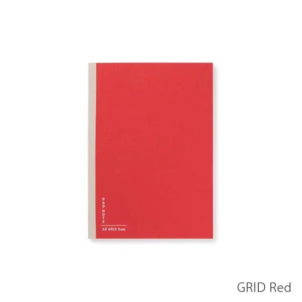 PAD NOTE A5|2つ折りの紙を束ねて製本したメモパッドのように使えるノート GRID/Red