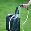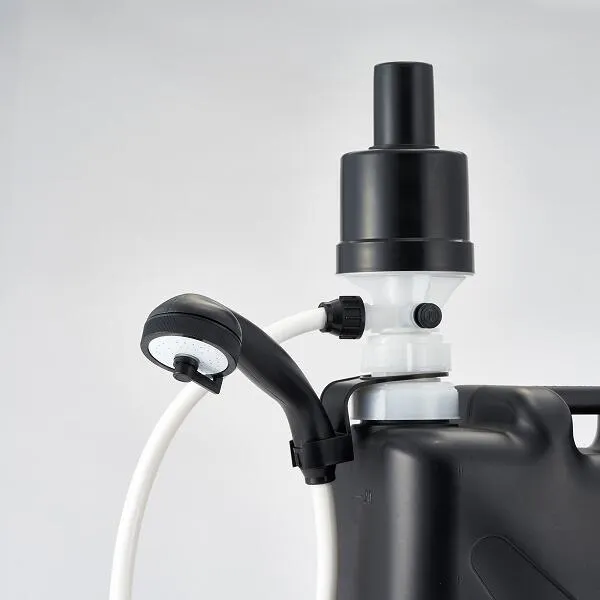 \\オススメPOINT// ◎手動式 ▶電池、電源は不要。 ◎アウトドア、マリンスポーツなどで活躍。防災グッズとしても。 ◎モノトーンカラー ▶シック&シンプルなデザイン。 ◎シンプルな収納用バッグが付属。 ◆市販のポリタンクにセットして使う手軽で便利な商品です。 ※商品にポリタンクは含まれません。 ※水専用商品です。 ◆手動式のため、電池や電源は不要です。上部をポンピングしてタンク内に空気を送り込み、空気圧を利用してシャワーを出します。 ◆海・山・川などで、アウトドア、キャンプ、マリンスポーツなどを楽しむときに役立つアイテムです。水道がない場所でも手軽にシャワーを使え、砂や汚れをサッと洗い流します。アウトドアグッズなどの片付け前にサッと汚れを落としたいときにも。 ◆電源不要のため、いざというときの防災グッズとしても役立ちます。 ◆保管に便利な収納用バッグ付きです。 <使用方法> ・吸い込み側ホースをタンク内に入れ、エア漏れしないようキャップをしっかりと閉め込みます。 ・外径65㎜サイズのタンクには付属のアダプターをご利用下さい。 (外径50㎜サイズのタンクにはアダプターの取付けは不要です。) ・上部の押しキャップを20回押して加圧した後、シャワーヘッドのレバーを回すと約1.5リットルの水が出ます。 ・流水時間15秒~30秒(タンク内の水量などによって変わります。) ・タンクを高い場所に置いてからシャワーを出すことで勢いが良くなります。 ・勢いが弱くなったら再度ポンピングして加圧してください。 ・使用後はエア抜きボタンを押してタンク内の空気を抜きます。残圧による水漏れ、タンクの劣化を防ぎます。 ・専用の収納用バッグで保管できますが、収納前にシャワーヘッドやホース内の水抜きを行ってください。