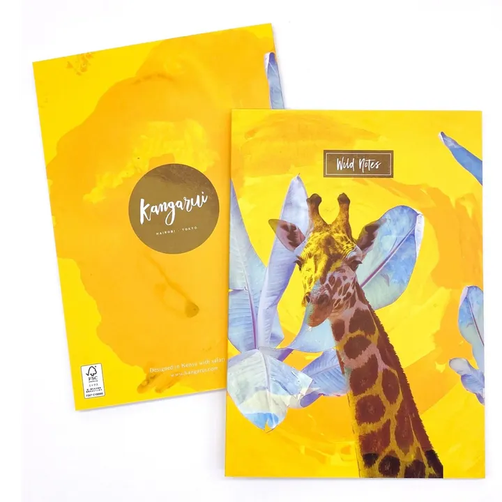 アフリカの大自然をモチーフにしたオリジナルアートカバー付きノートです。 あなたの夢や目標を書き留めたり、苦手な勉強の学習ノートにしてみるなど使い方は自由に!このノートでハッピーな時間をお過ごし下さい。 ラミネートマット紙カバー付きFSC認証ミックス用紙96ページ。 罫線無し。 各デザイン内側にはトロピカルモチーフの透かしが入っています。 A5サイズ  | 日本製  "FEED THE BONGOS" ケニア特有の種であるマウンテンボンゴは、野生生息数が70数頭しかいない絶滅危惧種です。 ウシ科の中で最も大きい体を持つ彼らは密猟によってその数が年々著しく減少していて、Mt. Kenya野生動物保護局は数を増やすために繁殖活動をしています。カンガルイは、その「Save the Bongo Project」のサポートをしており、カンガルイのどの商品をご購入いただいてもその一部がマウンテンボンゴの餌代にあてられます。