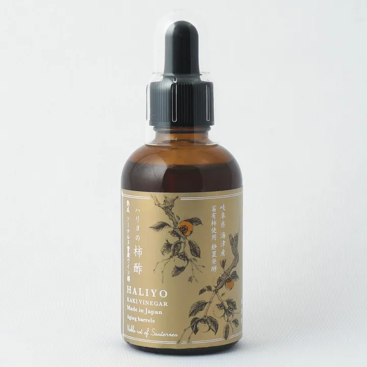 岐阜の湧水で育つ富有柿を、自然酵母と蔵付き酢酸菌で、静置発酵・熟成させたハリヨの柿酢。深い旨みとやさしい酸味、そして他の果実酢にはない優れた健康成分も魅力です