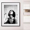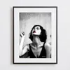 【現代アートポスター】モノトーン白黒 赤色の唇 かっこいい女性 A4(S) フレームセット:黒 29.4×38.4cm