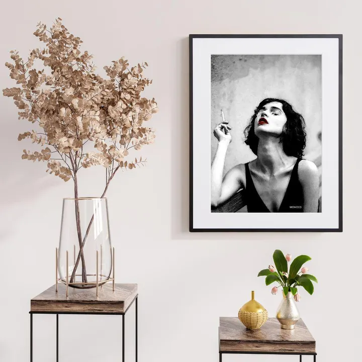 アーティスト -PROFILE- MOMOCO(モモコ) 「色」をこよなく愛する画家、ライブペインター。 躍動感あるアートにも関わらず、服を一切汚さず短時間で音楽と同時に描き上げる。そのパフォーマンスと巨大アートは観る人を魅了する。 前職は某有名ファッションブランドにてデザイナーとして活躍。その経験の中で養われた「色とデザイン」の絶妙なバランスを活かしつつ、トレンドを取り入れ進化し続けるアートを目指す!国内外問わず、精力的にアートと向き合い発信を続けている。 【作品について】 白黒に浮かび上がる赤色の唇がアクセント!クールな女性が印象的 スタイリッシュで都会的なインテリアにおすすめ 作品名:mariage lips 手法:デジタル、イラスト ペーパー:高品質半光沢紙 マットカラー:白 マット*:DXホワイト芯 100%バージンパルプ/PH7・中性紙(2mm厚) ※全てのアートにマットがつきます フレームカラー:黒、白、無垢(3種類から選択) ※マット付のため通常とはフレームサイズが異なる規格となります。 【マット*とは?】 アートポスターの周りに挟んだ厚紙の事。 マットを使わない時に比べ余白により広がりが生まれ、作品の新たな一面を引き出せ作品の見栄えがグッと良くなります。また、額縁のガラス面と作品が直接触れたままにしておくと、くっついて作品を傷つけることがあります。マットを使用することでガラスと作品の間に空間ができ、作品を保護することができます。ブランドコンセプトにより全てのアートにマットがつきます。 ー ファッションのようにアートを ー 私達が掲げるコンセプトです! 毎日着替えるファッションの様に、アートも気軽に飾り変えて欲しい... 一旦飾り終えたアートにも光を当ててほしい... ポスター単体、またはリピートで中身だけのポスターを購入された方に"専用のハンガー"をセットでお届け。 「今までに無い!新しいアートの飾り方を提案」 飾る事がなくなった前のアートをハンガーにかけて洋服と一緒にかけてもらう。 その日の気分や、モチベーションですぐに取り換えられる様に。 もちろん、魅せる収納としても今までにないおすすめの飾り方です。
