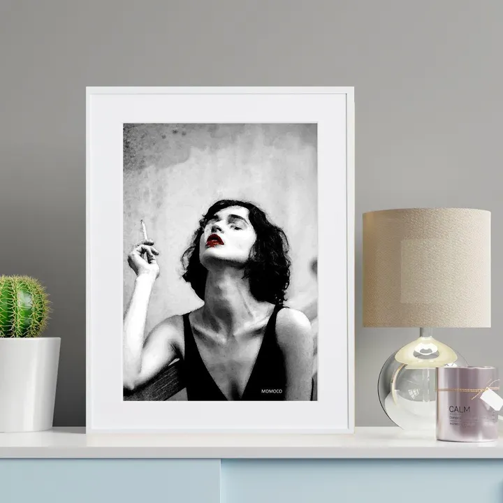 アーティスト -PROFILE- MOMOCO(モモコ) 「色」をこよなく愛する画家、ライブペインター。 躍動感あるアートにも関わらず、服を一切汚さず短時間で音楽と同時に描き上げる。そのパフォーマンスと巨大アートは観る人を魅了する。 前職は某有名ファッションブランドにてデザイナーとして活躍。その経験の中で養われた「色とデザイン」の絶妙なバランスを活かしつつ、トレンドを取り入れ進化し続けるアートを目指す!国内外問わず、精力的にアートと向き合い発信を続けている。 【作品について】 白黒に浮かび上がる赤色の唇がアクセント!クールな女性が印象的 スタイリッシュで都会的なインテリアにおすすめ 作品名:mariage lips 手法:デジタル、イラスト ペーパー:高品質半光沢紙 マットカラー:白 マット*:DXホワイト芯 100%バージンパルプ/PH7・中性紙(2mm厚) ※全てのアートにマットがつきます フレームカラー:黒、白、無垢(3種類から選択) ※マット付のため通常とはフレームサイズが異なる規格となります。 【マット*とは?】 アートポスターの周りに挟んだ厚紙の事。 マットを使わない時に比べ余白により広がりが生まれ、作品の新たな一面を引き出せ作品の見栄えがグッと良くなります。また、額縁のガラス面と作品が直接触れたままにしておくと、くっついて作品を傷つけることがあります。マットを使用することでガラスと作品の間に空間ができ、作品を保護することができます。ブランドコンセプトにより全てのアートにマットがつきます。 ー ファッションのようにアートを ー 私達が掲げるコンセプトです! 毎日着替えるファッションの様に、アートも気軽に飾り変えて欲しい... 一旦飾り終えたアートにも光を当ててほしい... ポスター単体、またはリピートで中身だけのポスターを購入された方に"専用のハンガー"をセットでお届け。 「今までに無い!新しいアートの飾り方を提案」 飾る事がなくなった前のアートをハンガーにかけて洋服と一緒にかけてもらう。 その日の気分や、モチベーションですぐに取り換えられる様に。 もちろん、魅せる収納としても今までにないおすすめの飾り方です。
