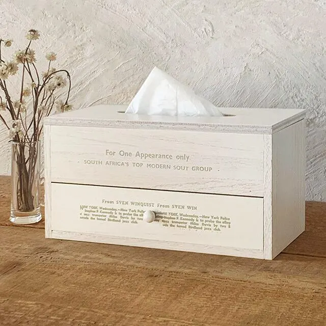北海道 旭川市の自社工場で製作しています 便利な引き出しつきのティッシュケース。 引き出しは、食卓では箸入れとして、 コスメスペースではネイル用品やアクセサリーの整理に。 リビングでも、爪切りや耳かき、絆創膏などの小物の収納に大活躍。 マスクも入るので、花粉症やインフルエンザの時期に備えて、普段からマスクを常備しておくのも◎ シンプルな見た目で、インテリアの邪魔になりません。 ティッシュケースは上蓋をはずして入れ換えします。 ■商品サイズ 約 横幅280×奥行140×高さ140mm 引き出し内寸 約 横幅242×奥行112×高さ48mm ティッシュを入れるスペースの内寸 約 横幅262×奥行き122×高さ58mm 厚さ54mmまでのスリムボックスティッシュが入ります。 ※ ボックスティッシュはメーカーによりサイズが異なります。サイズをお確かめの上ご購入下さいますようお願い致します。 ■材質 桐材と合板を使用。 木目、色合いなどが1つ1つ違います。 ※ティッシュは箱ごと入れてご使用下さい。