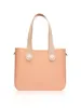 ◆華やかさとナチュラルな要素を併せ持つ万能なトートバッグ。自由に収納が出来る仕切りの無いタイプで、底面の角が丸み帯びた優しいスクエア型とふんわり穏やかな色味がマッチ。主張が少ないのであなたらしい個性を引き立たせてくれます。 ■構成部品 Frame:Nude Coral Flat Handles : Nude Plastic Twists: Cream