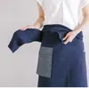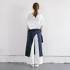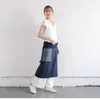 発色が美しいカットソーギャルソンエプロン ネイビー 形はひもを広げるとT字型  広幅のひもをウエストぐるりと巻いて、折り返します 折り返し部分にひもの重なったところを隠す感じです 折り返すことで、ひもはほどけません カットソーならではの特性を生かした結ばない工夫が新しい! もちろん結んでもOK! 着方、巻き方、自由です!! ひもの部分が長いので少々おなかの出ている男性でも大丈夫です 腰に巻いて ローウエストで身に着けるとグッと男前な感じになります ウエストサイズフリーの男女兼用 右に大きめのふらしポケット、左にシームレスポケット。 ポケットだって、左右一緒じゃなくても良い!自由なのです! ふらしポケットの生地はライトデニム ふらしポケットはからだから離れるので 中に入れたものが落ちない上に出し入れがスムーズです シームレスポケットにはトリコロールストライプカットソーを使っています ちらっとしか見えないところにもキュンとくるかわいさをプラスすることで、テンションアップに繋がればと願って!
