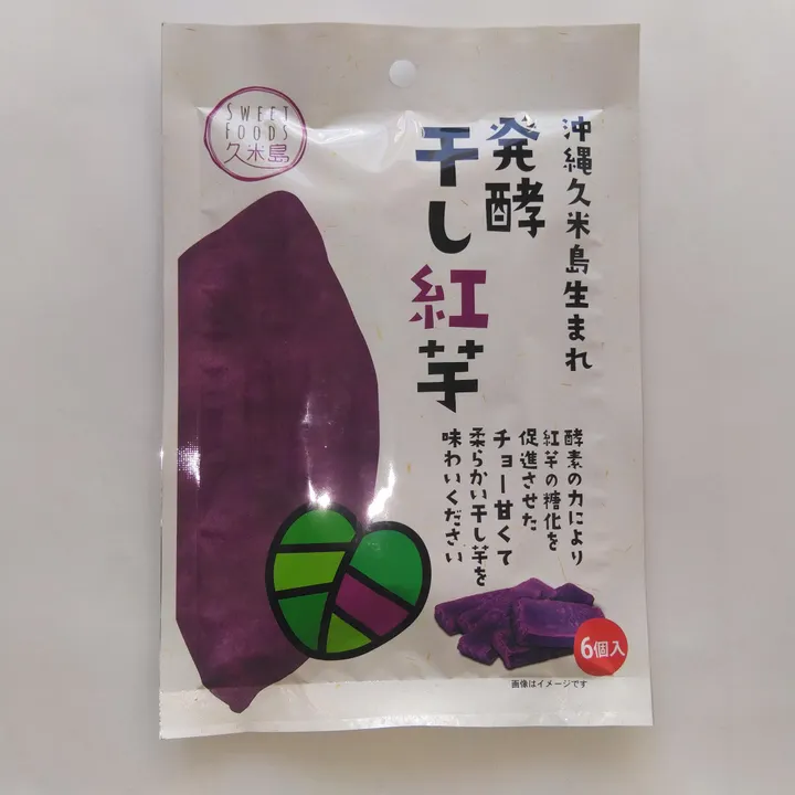 ①発酵干し紅芋は、沖夢紫のペーストを酵素で発酵させることにより、でんぷんの糖化促進を図り、その発酵ペーストを成型し、乾燥させたものです。乾燥後の発酵干し紅芋の糖度は60度以上あり、まさに畑のチョコと呼ばれています。 ➁原料となる紅芋は、主にASIAGAP認証農場で生産された安心・安全なものとなっています。 ③沖夢紫の発酵干し紅芋には、肥満や糖尿病に対する予防・抑制効果や眼精疲労回復、視力改善効果など体に良いとされているアントシアニンが多く含まれています。 ④発酵干し紅芋は、無添加でチョー甘くて、柔らかい干し芋です。