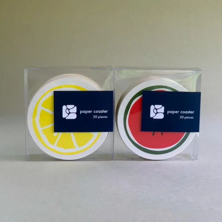 厚さ約1mm 直径9cmの紙コースターのセットになります。 高吸水性の専用紙を使用しており、コップやペットボトルの水滴をしっかり吸いとります。 デイユースはもちろん、ホームパーティを開いたり、仕事でのちょっとした来客への対応時。 はたまたキャンプやバーベキューといったアウトドアなど、様々な場面での使用が想定いただけます。 そして使用した後は捨てるだけ。 面倒な後片付けもなく楽ちん。 10枚セットはチャック袋 30枚セットはクリアケース付きで持ち運びにも便利です。