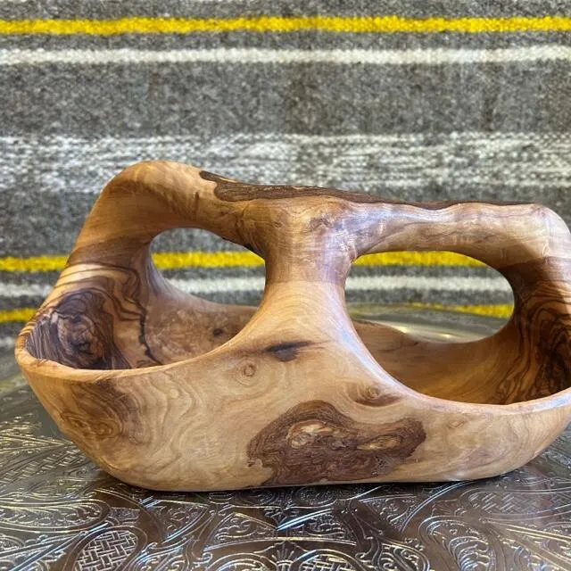 サイズ:約26×15×高さ15cm 重さ1044g テーブルの演出に、ちょっとおしゃれな小物入れなどにどうぞ。 北アフリカの雨があまり降らない大地で400年以上生き抜いたオリーブの木の圧倒的な木目が特徴「大自然のアート」 *オリーブの木 特有の滑らかな形、木目の表情は大自然の恵みの力をそのまま残した生命力溢れる絶品です。 これぞ北アフリカの大自然アート、長い年月の間、厳しい自然の中を何百年も生き抜き育った結果が表れています。圧倒的な「見ごたえ」があります。目にするたびに喜びと元気が湧き出ることでしょう!! 北アフリカではオリーブの木は1000年近くも生きる不死身「聖なる木」とされます。 *400年前後の古木を使っているためモノによっては古木ならではの自然な亀裂がございます。 *キッチンで使ったり、テーブルウェアとして使ったり、はたまたインテリアとしてその存在感を発揮させたりと楽しみ方は無限大。 *地中海の恵みをたっぷり浴びたオリーブの木は、ゆっくりと成長するので大きな木になるには何百年とかかります。その為、木の密度は高くなり、硬く傷つきにくくなります。色が変わってきたらオリーブオイルを塗ってください。長く使っていただける一品です。 *写真で細かくご案内していますが、400年以上の古木という材質上、ご案内するボードは一点一点、異なる木目や節があり、色も各々違います。また、細かい傷や表面の微妙な凹凸、磨いた跡や虫食いの跡などがある場合もございます。これらは不良品扱いとはなりませんので、予めご理解の上お買い求めください。