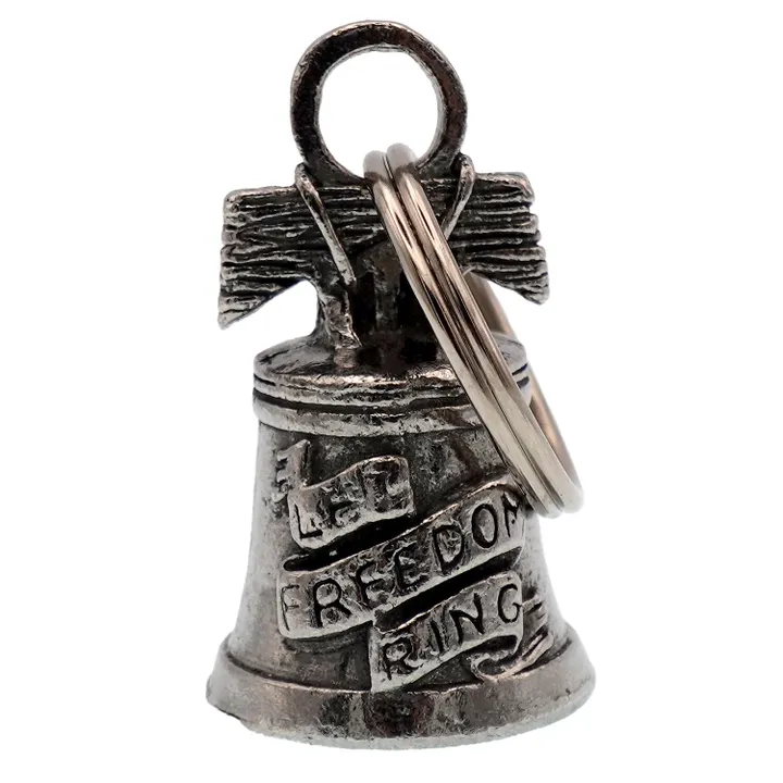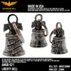 アメリカ製ガーディアンベル社製ガーディアンベルです。 MADE IN USA アメリカ製 交通安全 魔除け 御守り ガーディアンベル アメリカのライダーの間には、事故や、転倒の原因は「道路にひそむ悪魔」によるいたずらだという伝説があります。悪魔は走る者に悪戯やトラブルを運んできます。このベルは美しい音色で悪魔たちを追い払うと言われ愛されています。そんな悪魔のいたずらを防ぎ、御守りとなるのが、守護者のベルという意味を持つガーディアンベル。 日本でも鈴の音(ね)は神道では魔除けの音と言われています。ピューター製の鈴でいい音色でガーディアンベルはデザインも様々あります。 またガーディアンベルにまつわる伝説として、プレゼントとして送られたベルの効果は、自分で手に入れたものの2倍になると言われています。 それゆえに彼氏・彼女・友達・家族へのプレゼントとしての人気も非常に高まっています。 シルバーアクセサリーのようにおしゃれに装着できて素敵な音色を奏でるガーディアンベル。 バイカー以外にも自転車や旅・交通安全のお守りとしてお使いいただけます。 カバン・ランドセル・キーホルダー・ペットの首輪等に付けてお使いください!! ※タイラップ等でバイクのフレームにも簡単に取り付けできます。 アメリカンモデルだけではなく、旧車ファン、レプリカライダーまで、さらにバイクだけでなく、自転車や車にもピッタリな御守りとなっています。 アクセサリーとしても人気で、アイディア次第で車体だけでなく、キーホルダーや鞄など、どこにでも付けておしゃれに楽しめます。