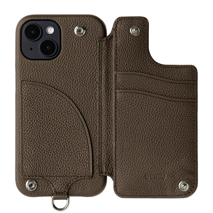 2023年9月より弊ブランドはDemiurvo(デミウルーボ)改めDEMIU(デミュウ)に改名いたします。 それに伴い、DEMIUの名を配したブランドネーム・ロゴが採用されます。 一部商品に関しては、Demiurvoとして引き続き販売いたしますが順次モデルチェンジ予定です。 何卒、ご理解のほど宜しくお願い致します。 フランス語で「風船」を意味するBALLON(バロン)。 風船のようなモコモコしたテクスチャーをデザインしたお財布機能つきiPhoneケース。 上質なレザーの質感と指にフィットする感覚が心地よいモデルです。 思わず目を惹かれるデザインと質感で存在感抜群のアイテムです。右扉の内側に2段のカードスリットと隠しポケット、左側に収納ポケットを備えた便利なアイテム。 蓋をスタンドにして横置きできるのでYouTubeやテレビ会議にも便利。 ショルダーなどを付けられるD型リングが付いているので、別売りのストラップとのセットや色違いでコーディネイトするのもおすすめです。 ※iPhone12 miniおよび13miniの背面のカード入れに関してですが左側(ケース装着側)の仕切り部分と、右側の裏ポケットにはカードはお入れいただけません。右側のカード入れにはカード段が1つの仕様となります。ご注意ください。 ※ストラップは別売りです。 ー仕様ー ・素材 本体:フランス産牛革 ケース部分:ポリカーボネート ・重量 約65g