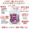 ーーー 【送料に関して】 商品合計が「60袋以上」もしくは「2ケース以上」で送料は弊社負担となります。(北海道・沖縄は除く) ーーー アミノ酸調味料・酵母エキス不使用のふりかけです。 かつお節ベースにしそ、梅肉を合わせることで後味に爽快感が残る酸味をプラスしました。 やさしい味が特徴です。 ご飯、お豆腐、サラダなどにふりかけて。 スプーン付き 【栄養成分(100g当り)】 熱 量:241kcal タンパク質:38.1g 脂 質:3.0g 炭 水 化 物:16.5g 食塩相当量:31.2g 【塩ってとっても大事!天然塩を使っています】 「無添加で作っている」というメーカーさんは多くいらっしゃいます。 無添加といってエキスを使うのは論外ですが(これはもう違法なんですけどね)、味付けに使っているものはどんなものを使っているの?って気になる方もいらっしゃるのではないでしょうか。 弊社で加工しているワカメの味付けにはすべて天然塩を使っています。 加工食品に多く使われる精製塩ではなく天然を使用しているため自然のミネラル分と旨味も豊富に含まれています。 精製塩とは、塩化ナトリウム純度99%以上の過精製塩のことです。 これはイオン膜透過法という方法で分子レベルでミネラルなどがすべて除去されています。 その中には、ナトリウムの排出に必要なカリウムなども多く含まれます。 このような精製塩ばかりを摂取していると、ナトリウムの過剰摂取になってしまいます。 そのためカネジョウでは毎日安心して家族の皆様に食べていただけるよう、弊社の加工においてはすべて天然塩を使用しています。