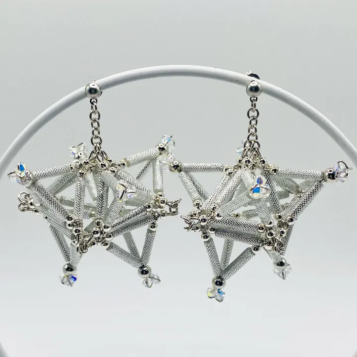3D スター アップサイクル ピアス/イヤリング(Silver taffeta)