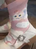 【バレンタインギフト】「2025秋冬新作」MEWJIオリジナル 靴下3足セット モコモコ刺繍 レディース |画像の色 (1組3足)5点セット