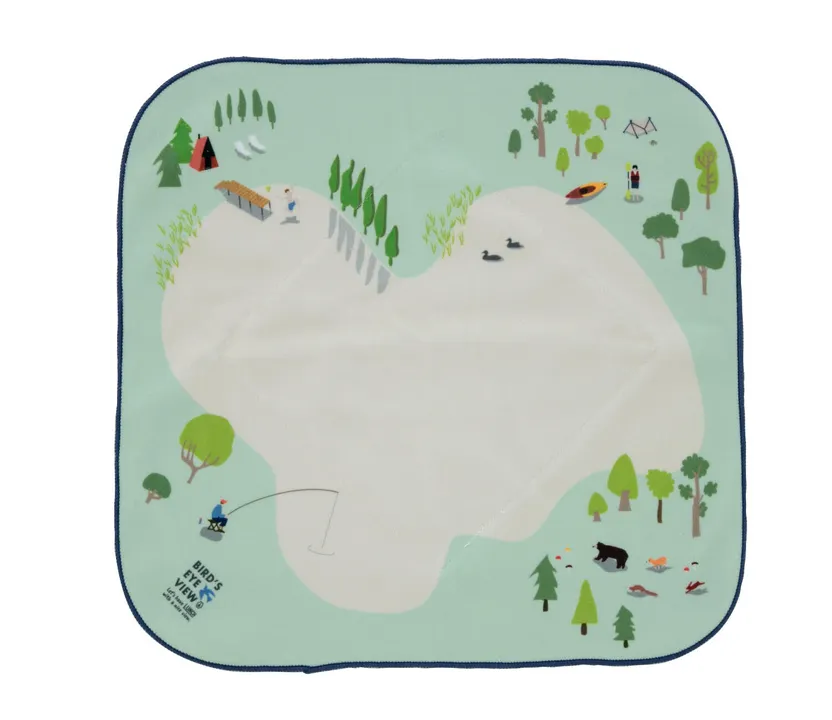 高い空の上、鳥の目から見た広大な自然の空気感をモチーフにしたランチシリーズです。 浜辺、キャンプ、釣り、登山、短いランチ時間をゆったり過ごせますように。 人気のくっつきクロスの裏面に保温・保冷シートがつきました。 生地の表裏が面テープのような構造になっているので生地同士がピタっとくっつきます。 結び目がないのでバッグの中でランチが嵩張らない嬉しいクロス。 包むものは他にも…水筒、スープジャー、タブレット端末、カメラ、折りたたみ傘 etc.