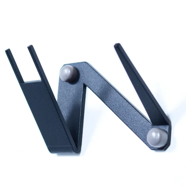 壁が息づく、鉄と暮らす。 TETUTOシリーズ helmet hanger アイアン素材のヘルメットハンガー ミニマルデザインと使いやすさに 1mm、1°以下までこだわりました。 ///シンプルアートに、美しく暮らす。/// シンプルの中に、アートを感じるミニマルなデザイン。 空間が息づく鉄と、美しい暮らしを。 ///まるでカフェのような空間/// 2.6mmの厚鉄が放つ重厚感は、 落ち着きを感じさせてくれます。 ///紐を束ねて、美しい収納を。/// アゴ紐を束ねることができる特殊な形状に仕上げました。 紐の幅が広いタイプは、縦に折って収納できます。 厚い鉄を2mmの幅を残して削り出す、こだわりの加工です。 ///カギの穴が小さくても大丈夫。/// キーフックの先端は幅3mm、高さ2.6mmという極小サイズに加工しています。 そして奥側に進むほど幅が広くなるデザインなので、掛けるものが安定致します。 鍵の小さな穴や、小さいサイズキーホルダー、チェーンキー、指輪など、何でもおしゃれに掛けて頂けます。 ///コインで簡単取り付け/// 壁を傷付けにくい 石膏ボード専用のピンを コインで押して簡単取付。 3本のクロスでガッチリ固定するので 安定感は抜群です。 ピンを抜いて取り外し可能なので どこでも何度でも設置できます。 最後にキャップをはめて設置完了です。 ///国際品質規格認証工場で熟練職人が作る。/// 2.6mmの厚鉄から 切り出し、曲げて、削る。 表面は、極細凹凸塗装で、 上質な「くすみ」を放つ。 角は、手作業で削る、 手に馴染む丸み。 国際品質規格認証工場の、 たしかな職人技で、 手間と時間を惜しまず、ひとつづつ作る、 made in Japan品質です。 いつまでも見ていたい、 触れていたい。 そんな鉄のある暮らしを。 心を込めて。