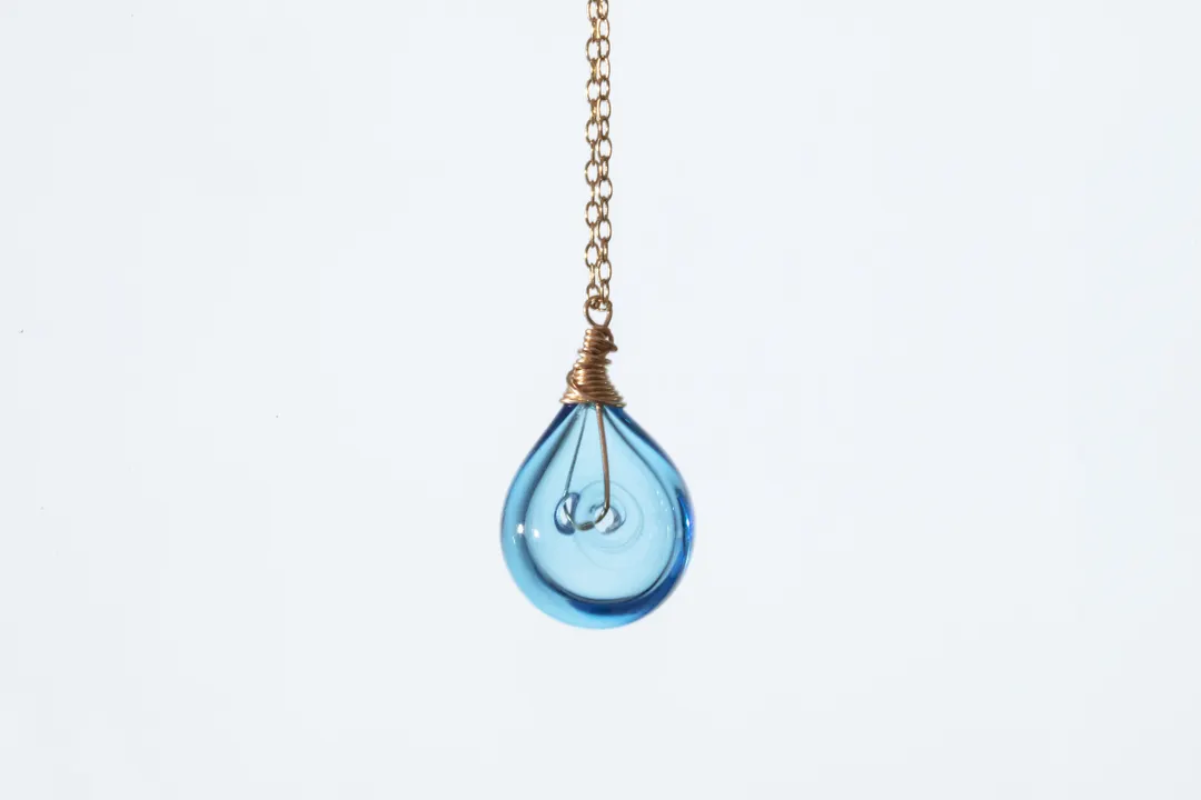【アロマネックレス】15mmのガラスに好みのアロマオイルを ライトアクア