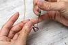 モチーフ本体:10mm×15mm(ハンドメイドのため大きさは目安です) チェーン長さ:45㎝ 留金具:ニューホック(ボタンのように留め合わせて使用します) 重さ:約3g