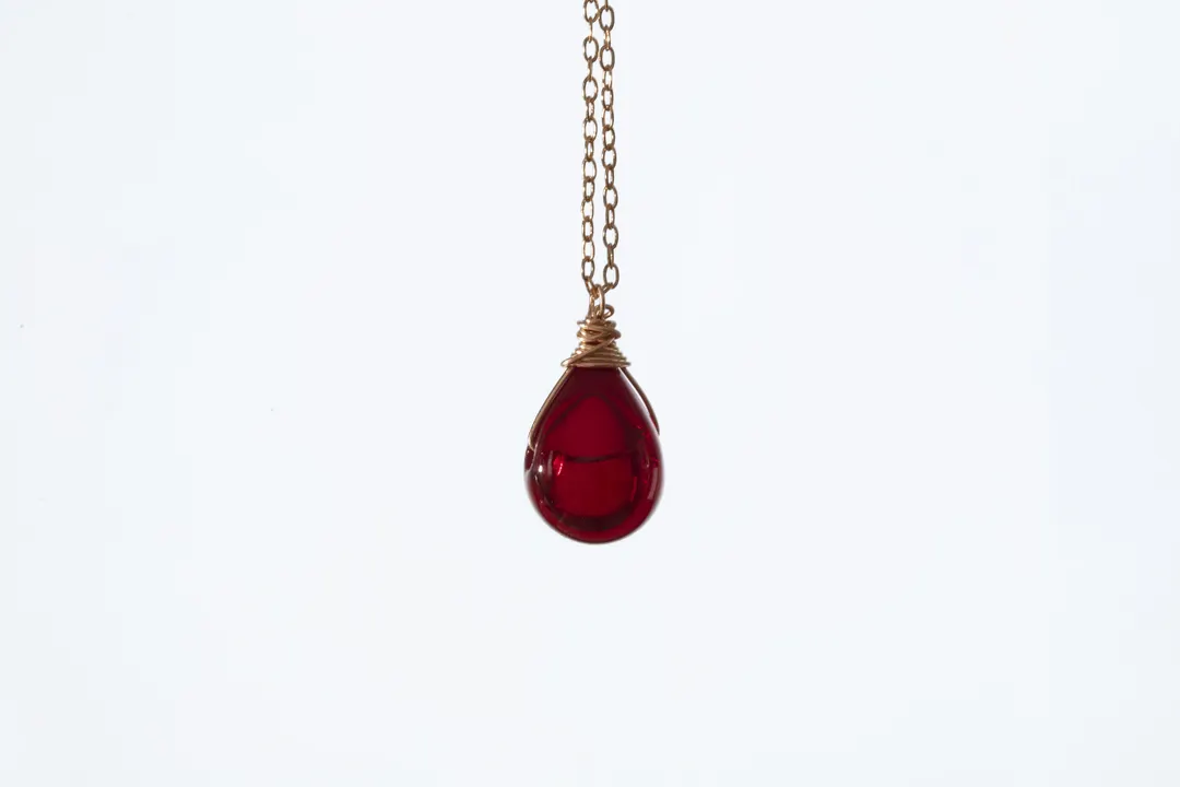 【アロマネックレス】15mmのガラスに好みのアロマオイルを レッド