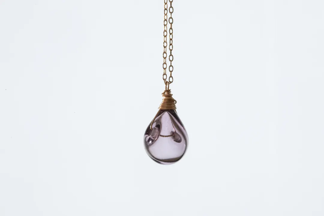ガラスは中が空洞です。そのまま身に着けるのはもちろん、アロマオイル、お塩、お水など、サイドの穴からスポイトなどで注入可能。様々な使い方ができます。