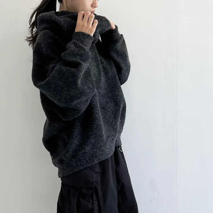 【日本製】シープパイル ビッグシルエットネックウォーマー付きプルオーバー チャコール