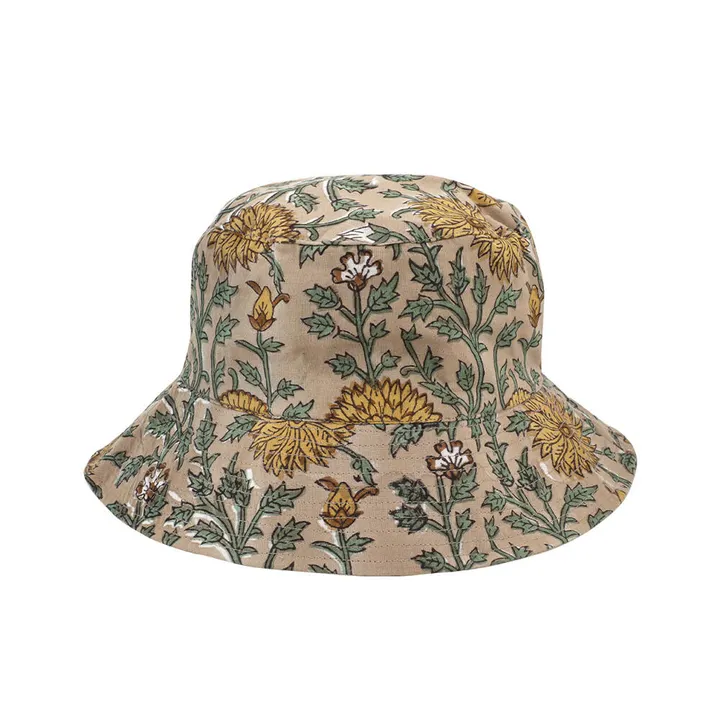 「心地よい」空間作りにぴったりな、落ち着いた色調のブロックプリントシリーズ。 「ブロックプリント」は、インドの伝統的な技法で、職人が木版を使い、一つ一つ手作業で生地にプリントを施した布です。 落ち着いた色合いのブロックプリントがおしゃれなバケットハット。 シンプルで落ち着いたデザインは、お出かけや散歩など、日常使いにぴったり。コーディネートにさりげなく個性をプラスしてくれるアイテムです。 ※表示数量を超える在庫や、詳しい納期につきましてはメッセージよりお問い合わせください。
