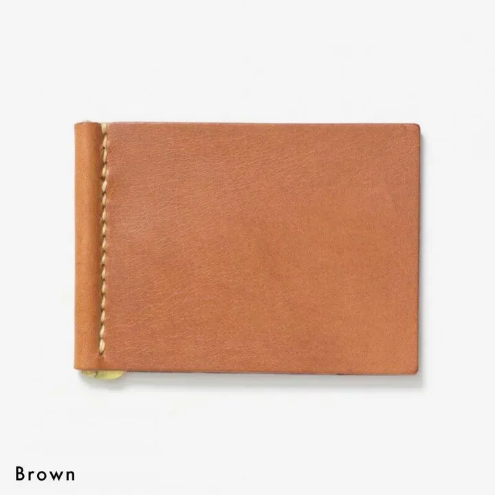 ◉ポケットにスリムに収まる、ナチュラルな革のマネークリップ◉ - ポケットに入れて身軽にお金とカードを持ち歩ける、ポケット付きのマネークリップ。革の自然な質感を活かして、シンプルに作りました。 マネークリップは薄くポケットに入れても膨らまないので、バッグを持ち歩かずに身軽に外出できます。会計時にすぐに取り出せるのも良いところ。 免許書やクレジットカードをまとめて収納できるカードポケット。 財布に入れると膨らみそうな分量でもスリムに持ち歩けます。 昔ながらの方法で加工された革は、使うほどに馴染みツヤが増していきます。 クリップには真鍮無垢を使用。内部まで腐食が進みにくく、良く触れる箇所は美しい金色に変わっていきます。革と同じように経年変化が楽しめる素材です。 - ■サイズ H8.7×W11.5×D0.9cm ■素材 牛革(スムース)・真鍮・麻糸・鉄 ■原産国 日本 - ご注意 ※植物性タンニン鞣しの革を使用しているため、色むら、シワ等がある場合がございます。 ※撮影の状況、閲覧する環境によって⾊などが変わって⾒える場合があります。 ※Blackは黒、その他はキャメルの糸を使用します。