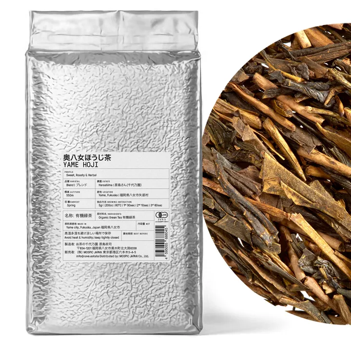 銘茶の里・八女。その中でも最も標高が高い矢部村の茶畑で無農薬・無化学肥料で育てられた茶葉100%使用の甘く香り高いほうじ茶。 奥八女ほうじ茶 ─ 八女・矢部村の清らかな山あいから ほっと一息つくたびに、カシスのようなフルーツや黒糖を思わせる甘い香ばしさがふわり。 茶どころ八女の中でも、清涼な山霧に包まれる矢部村で育った茶葉を 100 % 使用。農薬も化学肥料も一切与えず育て、ていねいに焙煎して仕上げました。有機 JAS 認証取得で、身体にも地球にもやさしい一杯です。 このほうじ茶が愛される理由 香り高い浅焙り 焦げを感じさせないライトロースト。カラメルのような上品な甘みとナッツのようなコクが後を引きます。 食事にもスイーツにも◎ 和洋を問わず料理との相性抜群。ミルクで割れば香ばしい“ほうじ茶ラテ”にも早変わり。 夜でも飲めるやさしさ 低カフェインだからリラックスタイムや就寝前の一杯にも。 「山の静けさを、そのまま湯呑みに。」 からだ想いのほうじ茶で、日常にやすらぎの時間を。 こんなシーンで カフェのデザートペアリングティーとして 旅館のウェルカムドリンクや夜食バー 物販なら**「おやすみ前のお茶」コーナー**でリラックス訴求 茶葉使用量の目安 水出しの場合は常温の水1Lに対して茶葉10g使用。冷蔵庫で24-48時間抽出。 お湯の場合は200mlの急須に茶葉3-5g、3-4煎の抽出が可能です。