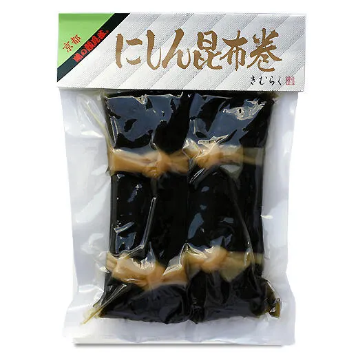 北海の幸にしんを北海道産の良質な柔らかい昆布で巻き、じっくりと煮含めました。 昆布のミネラルとにしんのカルシウムを充分に含んだ昆布巻きは低カロリー、低脂肪でヘルシーでありながら栄養価も高くお子様からご年配の方にも喜ばれます。 にしんの持ち味と昆布の風味がみごとに調和し、お茶うけやおせち料理、酒の肴に最適です。 そのままでも美味しく召し上がって頂けますが、袋のまま湯煎して頂くと更に美味しくなります。にしん昆布巻 2本入