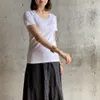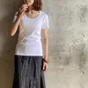 【日本製】丸銅コットンフライス_スクープネック半袖 ホワイト 2-3サイズ