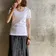cotton 100% 厳選された良質なコットンを使用しています 生地からオリジナルで、国内工場で1日に少量しか生産することができないビンテージ編み機で編みたてた非常に柔らかく、着心地がよい生地です。 sirene mermaidのカットソーは着心地を大切にしています。洗濯表示は脇ではなくNAMEにプリントしています。 made in Japan ********************************* youtubu動画:https://youtu.be/tjYMQ1xGsq4 instaglam動画:https://www.instagram.com/p/CtK6jEcOhvX/ ********************************* 大変伸縮性があり1-2サイズは9から11号の方でも着用可能です 初めの試着の時はピッタリとフィットする感じですが 洗っているうちに少し緩んできてはりつく感じはなくなります 脇に縫い目のないカットソーが何故いいのかというと 柔らかいおなかの横側のお肌は縫い目自体も気になりますが 洗濯表示等の織りネームがないため 心地よく着用することが出来ます 敏感肌の方にはおススメです 素材はコットン100%ですがフライス編のため同じ寸法(胸囲)でも大変収縮性があり、 ゆるやかに体にフィットし7号から11号の方の着用が可能です。 素材は厳選された良質なコットンを使用しています。 無地はボディは脇に縫い目がない丸胴<筒状に編んである>(シームレス)のため、 耐久性にも優れ、 洗濯をしても型崩れがしにくく、着心地がよいのです。 程よいフィット感でシルエットが綺麗に見えます。 バリエーションも豊富で一度購入されたお客様はその着心地のよさ、価格と品質のバランスから リピートして購入される方が多数いらっしゃいます。 大変伸縮性があり9から11号の方でも着用可能です。 初めの試着の時はピッタリとフィットする感じですが洗っているうちにはりつく感じはなくなり少し緩んできます。 おうちでのリラックスタイムに着心地抜群でソフトフィットなのでジャケットのインナーにお勧めです。 シレーヌマーメイドのコットンフライス丸胴は ?@厳選された良質なコットンを使用しています 一般的なTシャツより厚みがある30番手という太さ(重さ)の糸の中から 日本製の良質な糸を厳選しています ?Aビンテージ編み機で編んでいます 国内工場で1日に少量しか生産することができないビンテージ編み機で ゆっくりと丸く筒丈に編みたてているため糸にテンションがかからず 非常に柔らかく生地を編みたてることができます ?Bわきに縫い目がない丸胴 丸編み機で編むカットソー生地は、筒状の生地を縦にカットして一枚の 生地にしますが「丸胴」は開かず筒状のまま使うので わきに縫い目がないので着心地がいいのが特徴です SEAMLESS 定番の無地シリーズのボディは脇に縫い目がない<丸胴>(シームレス)ここが程よいフィット感でシルエットが綺麗に見えるポイントです 耐久性にも優れ、洗濯をしても型崩れしにくく着心地がよいのです。 フライスとはフライス編機で編んだリブ編みの生地 伸縮性に優れているのがフライスの最大の特徴若干厚みがあって手触りがやわらかく着心地のいいのが特徴。 フライスは、表から見た編み目と裏から見た編み目が同じでたて綿が強いのも特徴。横方向によく伸び縮みします 程よい厚みの生地なので、季節を問わずオールシーズンで着られるのも魅力のひとつ。吸湿性、綿100%は通気性に優れているオールマイティな素材です。 SCOOP NECK 胸元が丸くあいているスクープネック 綺麗なラインを出すためにバインダー始末をしています 伸びの心配がないのも特徴です クルーネックに比べるとあきが深く女性らしいネックラインです HALF SLEEVES 細目で短めの半袖で二の腕をすっきりと綺麗に見せてくれます。 シンプルですっきりとしたデザインが特徴です 袖丈17cm