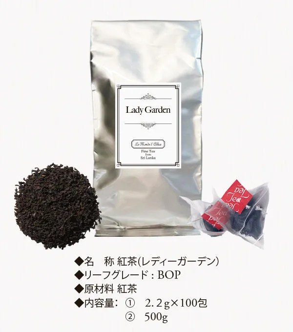 心惹かれる一杯、レディーガーデン 繊細な味と心地よく残る余韻は、まさにフレッシュそのもの。一口飲んだ瞬間、芳醇な香りが広がります。そして、口に含んだ瞬間、クセのないすっきりとした口当たりが感じられます。赤く輝く水色も魅力的で、目でも楽しめます。 レディーガーデンは、さまざまな利用シーンでも活躍します。朝食時やティータイムにはもちろんのこと、リラックスタイムやおもてなしの場でも最適です。 ◆リーフティー500g ◆リーフグレード : BOP