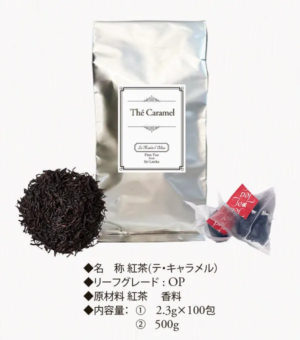 ストレートでもミルクでも楽しめる、ほっと落ち着くキャラメルの甘い香り 風味豊かなキャラメルの香りと紅茶のコクが深く香る紅茶。 どこか懐かしいキャラメルの甘い香りは、こっくりとしたミルクティーが似合います。 キャラメルの香りと紅茶の心地よいビターな味わいが溶け合った自信作。 ◆リーフティー500g ◆リーフグレード : OP