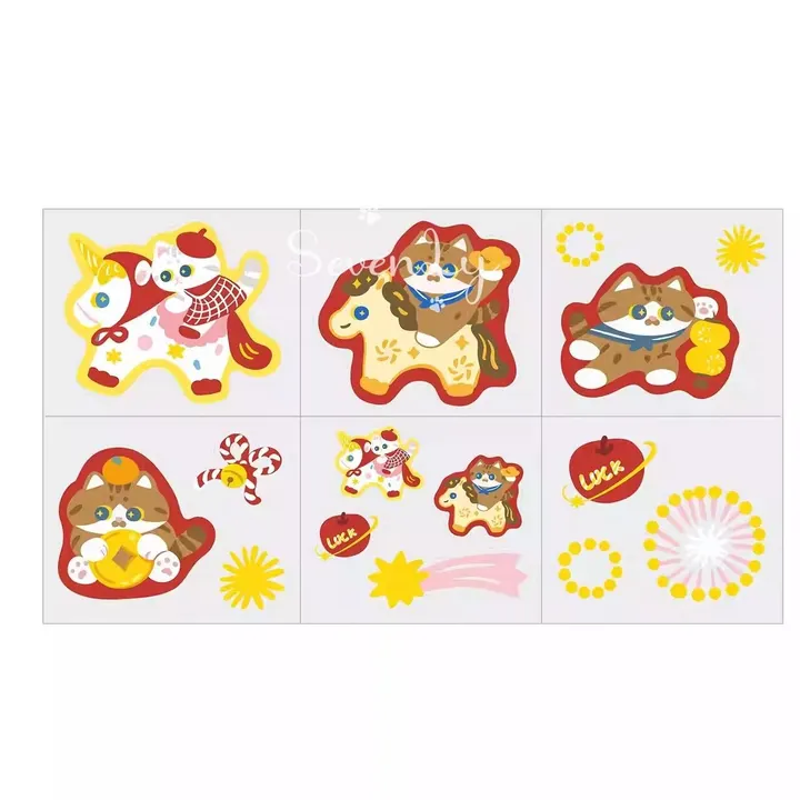 【2026春夏新作】午年 飾り 猫柄 ウィンドウシール 窓シール ステッカー『MEWJIミャオジ』☆インテリア シールセット(1枚)