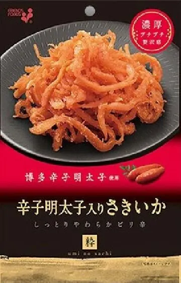 プチプチとした食感とピリッと辛く濃厚な明太子の風味が、さきいかの旨味を一層おいしく引き立てます。
