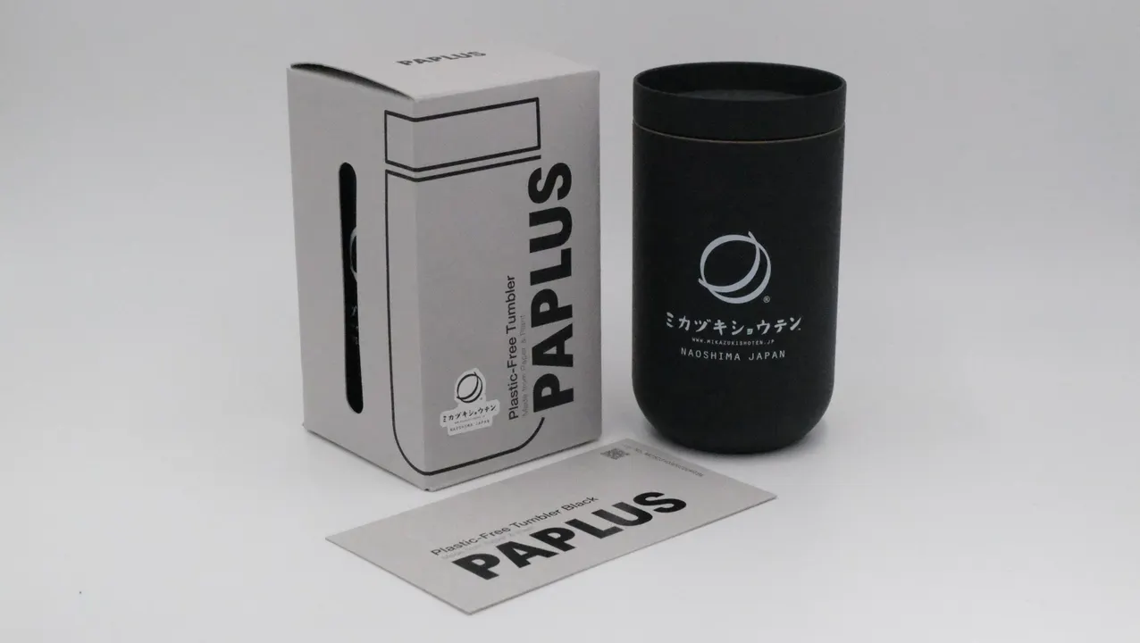 Plastic-Free Tumbler Black(プラスチックフリータンブラーブラック) ミカヅキショウテン コラボレーションモデル Lot.No. MZS2310300700PTBL 2023年6月より、マットタンブラーとスタッキングタンブラーをお客さま用としてご使用いただいている『ミカヅキショウテン』さん。 お客さまから購入希望を多くいただいたことから販売商品の開発が実現しました。 【ミカヅキショウテン】 〒761-3110 香川県香川郡直島町2291-5 Tel.087-813-1322 https://mikazukishoten.jp/ PAPLUS®製品の原材料は、トウモロコシのデンプンを発酵して得られる乳酸が主成分のPLA(ポリ乳酸)と紙が主原料です。 地球に優しい素材で作ることで、陶器や木材製品のように天然素材独特の風合いとなっており、愛着を持ってお使いいただけるよう色合い、濃淡などの個性を大切にしています。 ■こだわりのデザイン プラスチックフリータンブラーブラックは、独特の素材感を生かすためシンプルなデザインにこだわりました。 タンブラーのサイドのシルエットをストレートにするため金型から後加工にこだわり、最終的に研磨してマットな風合いに仕上げています。 ■こだわりのブラックカラー ミニマルなデザインポリシーを持つPAPLUS®にとって相性のよいブラック。表情の細部にもこだわり、マットなものを採用し、PAPLUS®本来のテクスチャーを全て消してしまわない様に内側はそのまま残し、外側だけウレタンコーティングしたツートンカラーとなります。 ■ウレタン塗装について 今回採用した塗装は、黒の顔料をウレタン樹脂に溶いて塗装するウレタン塗装となり、人体に無害とされている人工塗料で食品衛生法にも適合しています。また、天然由来成分の比率が高いPAPLUSは木材製品と同じように水に対して少しデリケートですが、ウレタン塗装をすることにより耐水性が増し、経年変化のスピードを抑える効果があります。 実はPAPLUS®の主原料であるトウモロコシ由来の生分解性樹脂(ポリ乳酸)は塗料をはじいてしまう性質を持っています。その課題を、日本のモノづくりである漆塗りのノウハウを持つ協力工場の下塗り技術により解決することができました。 *回収されたカラーバリエーションは塗装部分をグラインダーなどの工具で剥がすことができ、内側は塗装をしていないので効率よくPAPLUS®の純粋な材料だけを再製品化の工程に回すことができます。 ■パッケージへのこだわり パッケージには新聞や雑誌の古紙からできた100%再生紙である「チップボール」を使用しています。 ■暖かい飲み物もOK 植物由来成分純度の高い製品の多くは耐熱機能を持たないものが多い中、プラスチックフリータンブラーブラックの耐熱温度は120℃ですので安心して暖かい飲み物にお使いいただけます。 ■地球と調和する素材 プラスチックフリータンブラーブラックの約86%は植物由来成分であるトウモロコシ由来の樹脂と紙でできています。 その主成分に、耐熱性機能を担保するために天然の粘度鉱物(約7%)と石油由来の添加剤(約7%)を加えています。 *1 また、素材の大部分は微生物の働きにより水と二酸化炭素に分解されます。*2 *1 最低限使用している添加剤は、厚生労働省が定める食品衛生法に準拠しておりますのでご安心ください。 エコ商材といわれるものの中には添加剤について言及されていないものが多くあります。 ご注意ください。 *2 分解に要する時間や程度は環境により大きく変わりますので100%を保証するものではありません。 ■使い捨てるのではなくリサイクル PAPLUS®製品はゴミとして捨ててしまうと焼却されてしまいます。ほとんど植物由来成分からできているのでカーボンニュートラル(実質的にCO2を増加させない)ですが、ゴミとして焼却するのではなく、資源として回収し、再製品化することにご協力ください。共に新たな循環を作り出していきませんか。 注)リサイクルは日本国内事業のみの対応となります。 PAPLUS®のリサイクルページはこちら https://paplus.jp/recycle/ ■生産から回収・再製品化の過程を公開 プラスチックフリータンブラーブラックには「トレーサビリティカード」が同梱されています。そのカードにはロットナンバーとQRコードが記されており、そこからその製品の製造時期、タイプ、回収・再製品化された数量などサイト上で確認いただけます。 プラスチックフリータンブラーブラック「ミカヅキショウテン コラボレーションモデル」のトレーサビリティページはこちら https://paplus.jp/traceability/mzs2310300700ptbl/